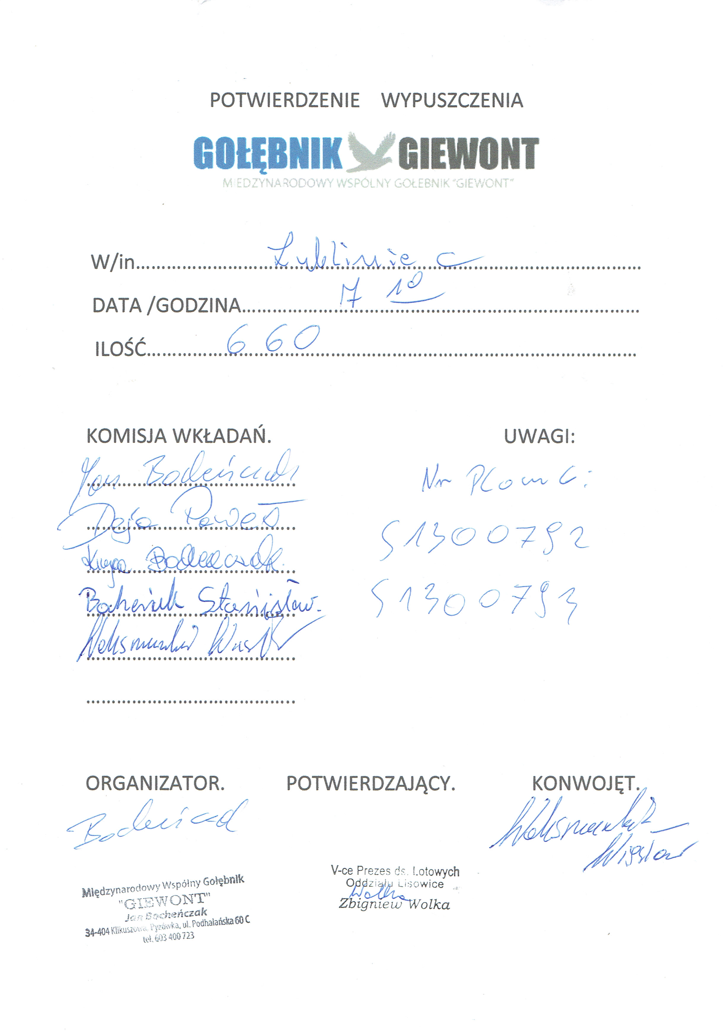 2 lot konkursowy już za nami, dla tego przedstawiamy Państwu protokół z wypuszczenia gołębi, oraz wideorelację.