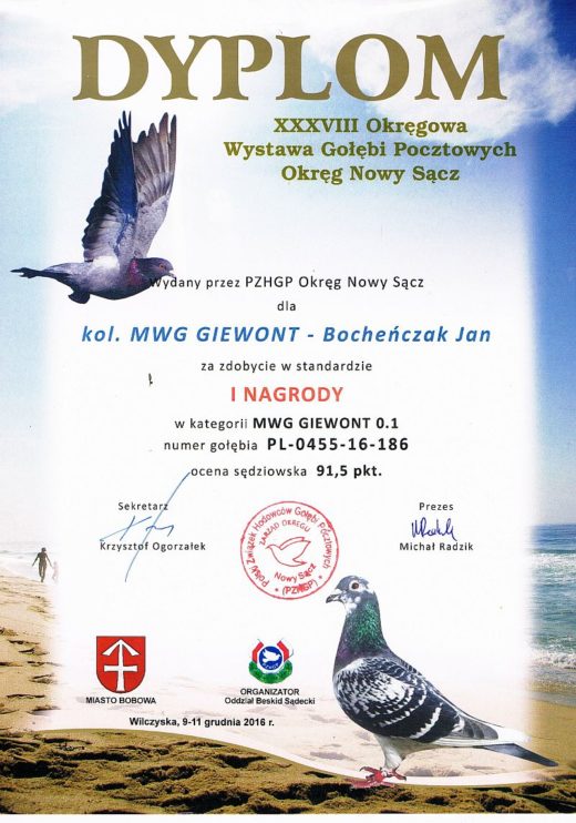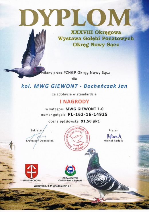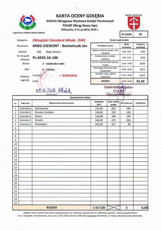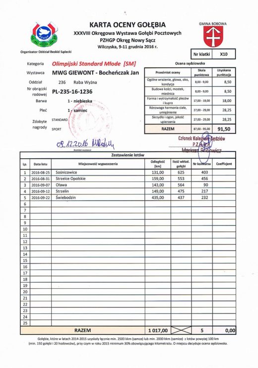W miniony weekend 10 gołębi (gołębie roczne) z gołębnika MWG Giewont uczestniczyło w "Wystawie Okręgowej w Nowym Sączu ".