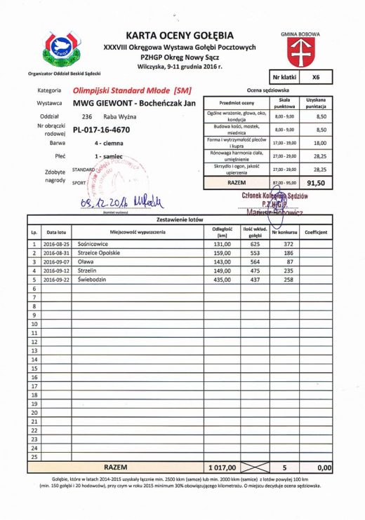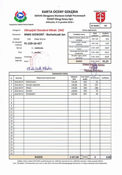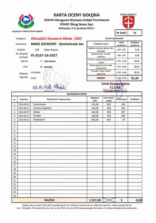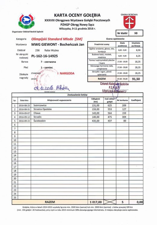 Poniżej prezentujemy karty ocen oraz dyplomy zwycięzców.