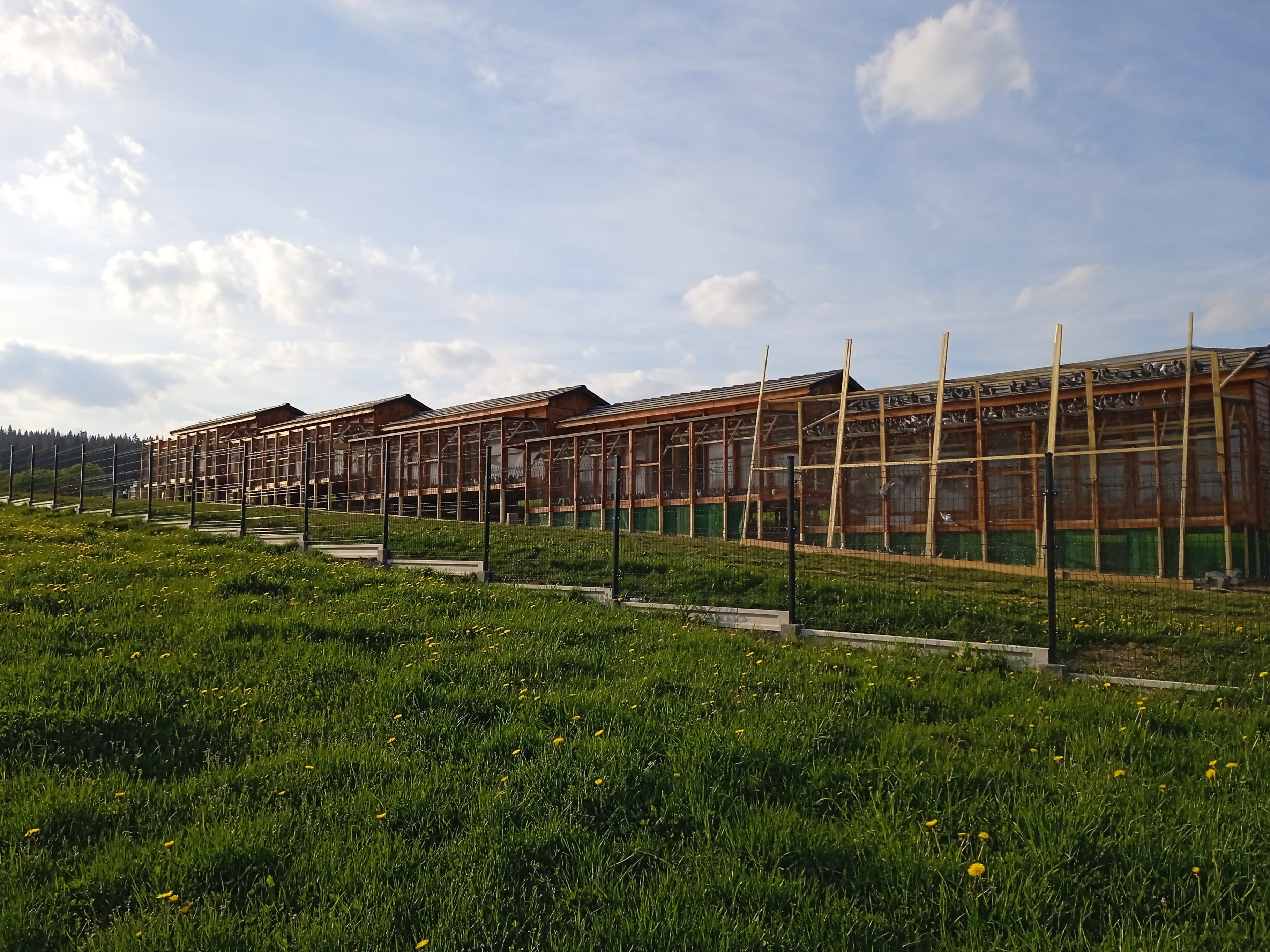 The pigeons from the first two boxes are already flying, the third and fourth ones are flying under the net, they use aviaries in subsequent lofts, we will soon prepare a video for you.